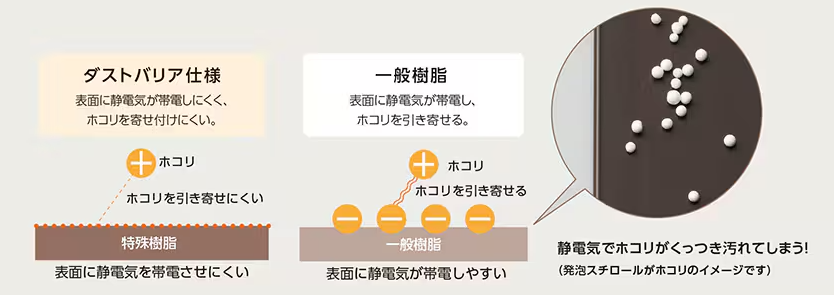 ホコリを寄せ付けにくく、